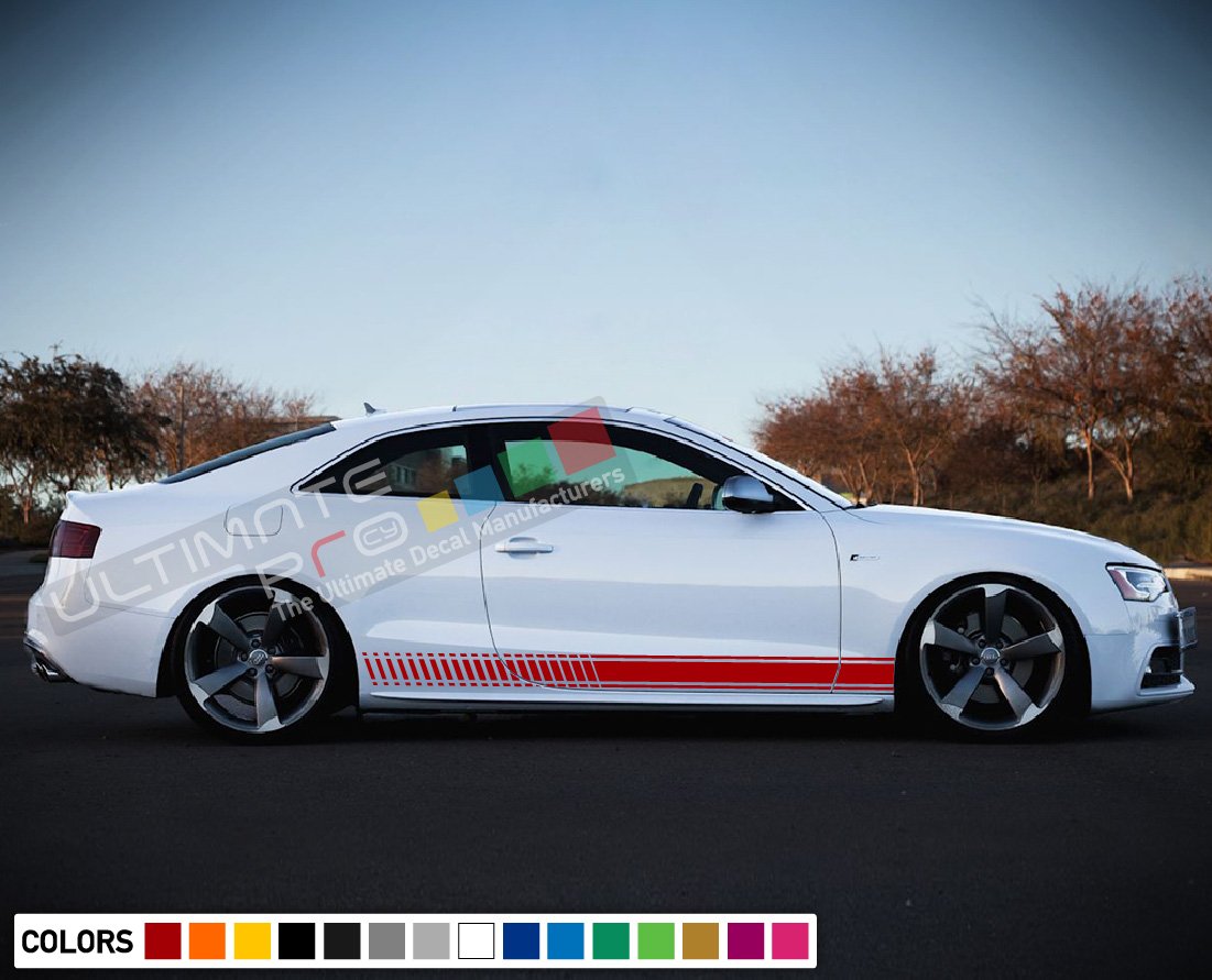 Decal Sticker Vinyl Stripe Kit Compatible with Audi A5 2008-Present. Our decals vinyl is high quality (Polymeric) and lasts 7 years outdoor. We can give the exterior of your car a unique look. You can choose from our wide selection of Graphics, Vinyls and Decals. We manufacture stickers for American, Canadian and European car models (Coupe, Saloon/Sedan, SUV, Pickup Truck)