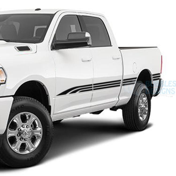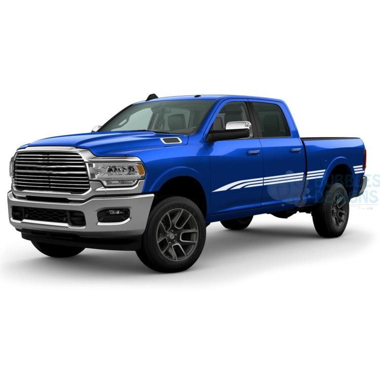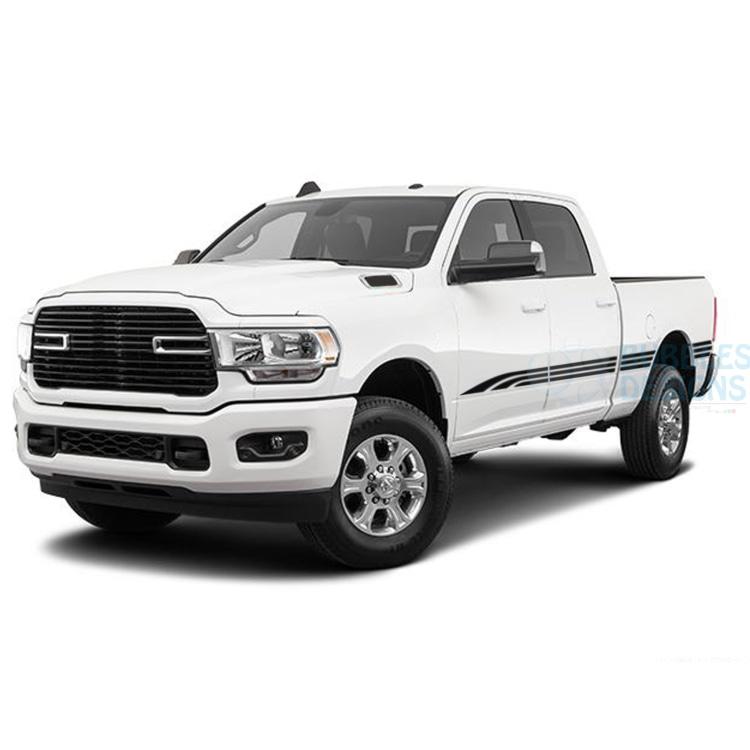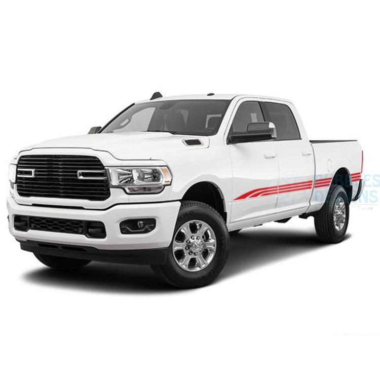 Triple Line Stripes Side Door Decals Graphics Vinyl for Dodge Ram Crew Cab 3500 Bed 6’4”. Our decals vinyl is high quality polymeric and lasts 7 years outdoor. We can give the exterior of your car a unique look. You can choose from our wide selection of Graphics vinyl and decals. We manufacture stickers for American, Canadian and European car models as a coupe, saloon/sedan, SUV, pickup truck.